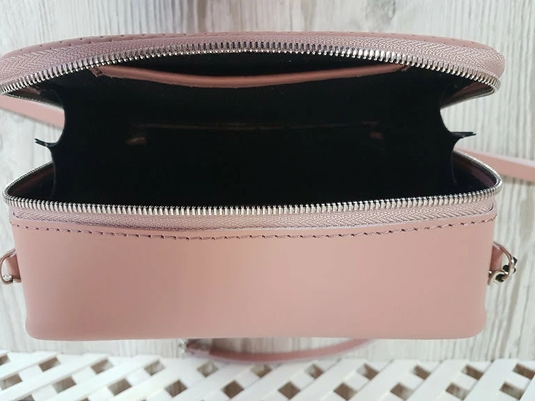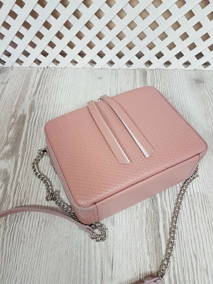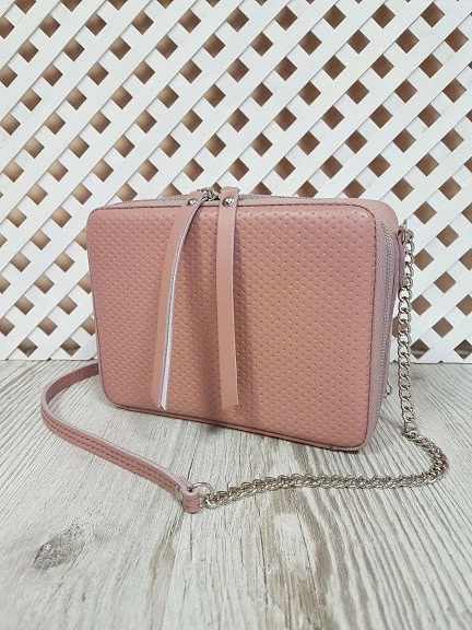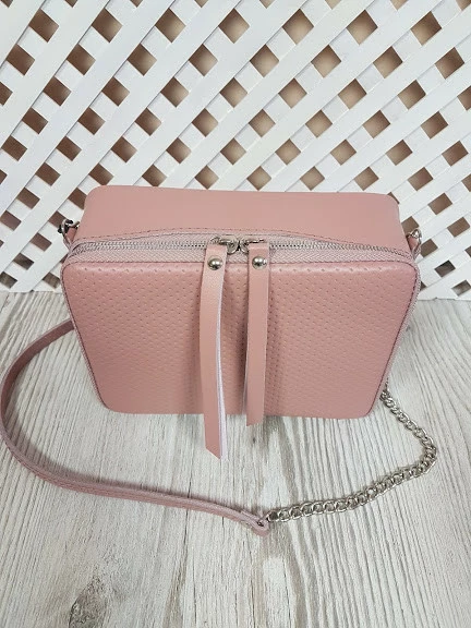 Сумка женская "КВАДРО" натуральная кожа, розовая плетенка молния в тон кожи