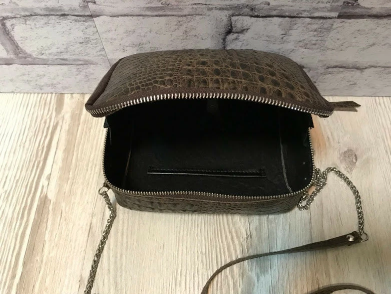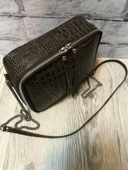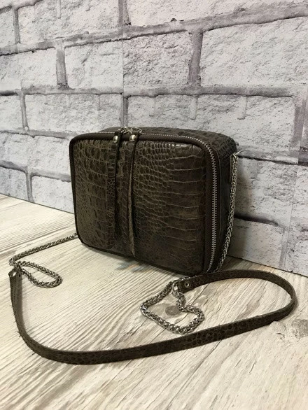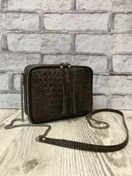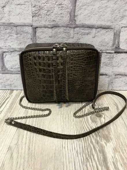 Сумка женская "КВАДРО" натуральная кожа, коричневая с тиснением под крокодила