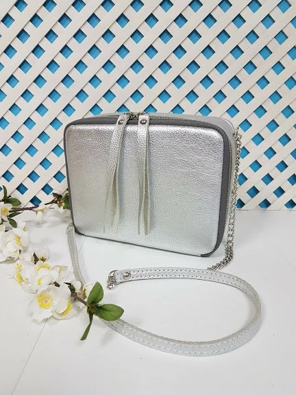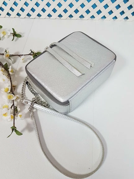 Сумка женская "КВАДРО" натуральная кожа, серебряный флотар