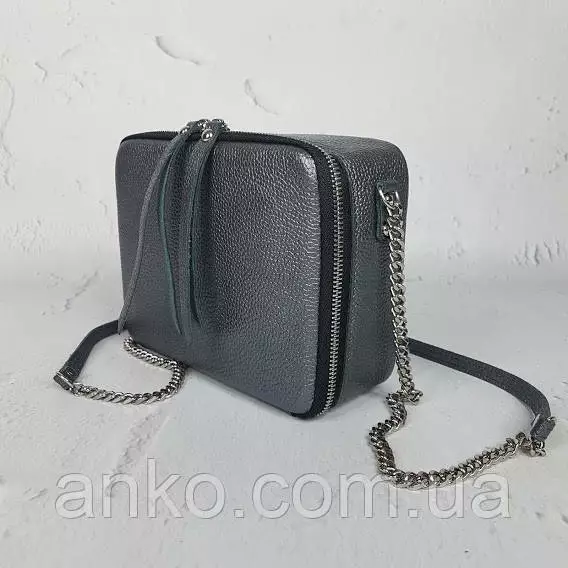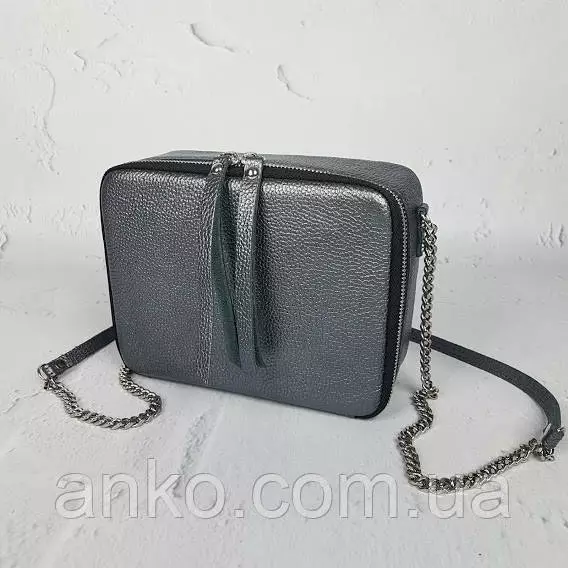Сумка женская "КВАДРО" натуральная кожа, серый металлик флотар