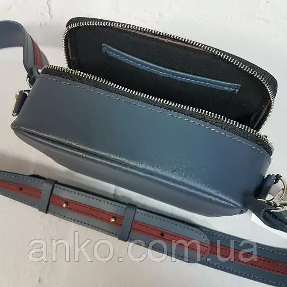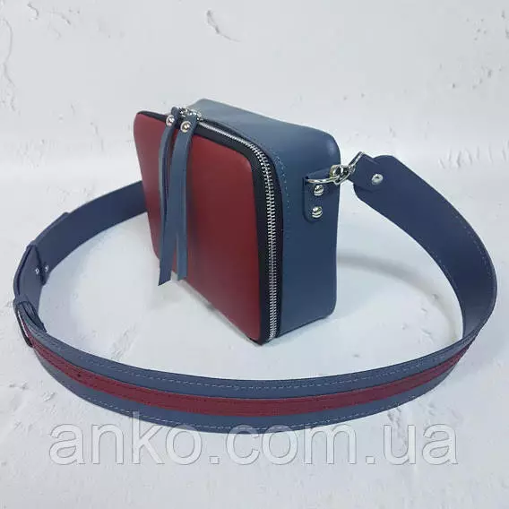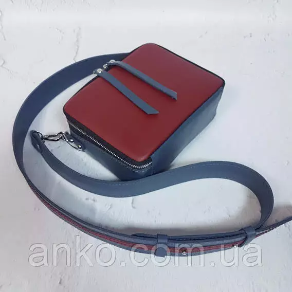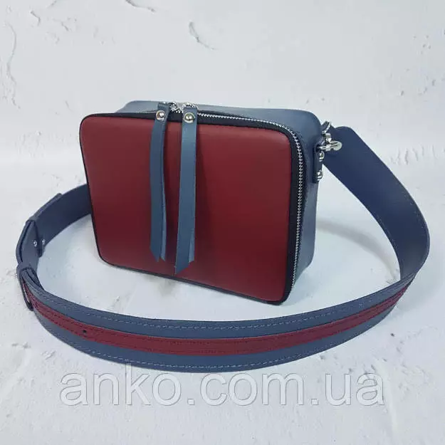 Сумка женская "КВАДРО" натуральная кожа, серо-синяя/темный коралл