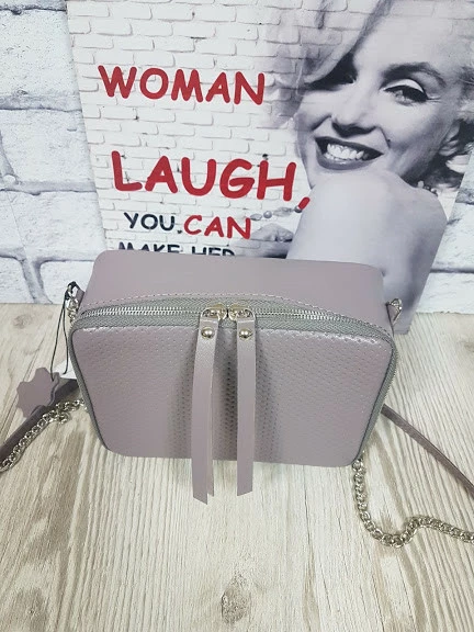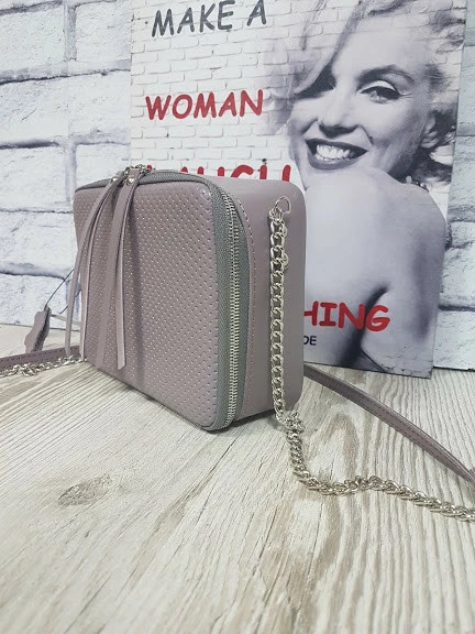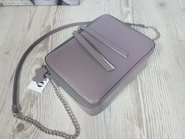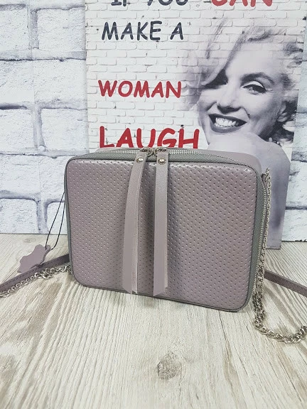 Сумка женская "КВАДРО" натуральная кожа, серый флотар на широком ремне