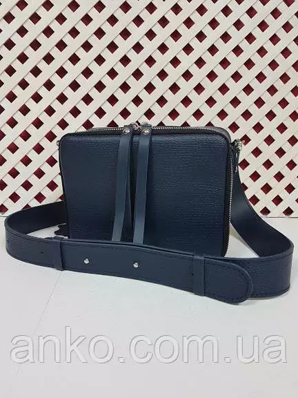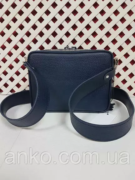 Сумка женская "КВАДРО" натуральная кожа, синяя под рептилию с широким ремнем
