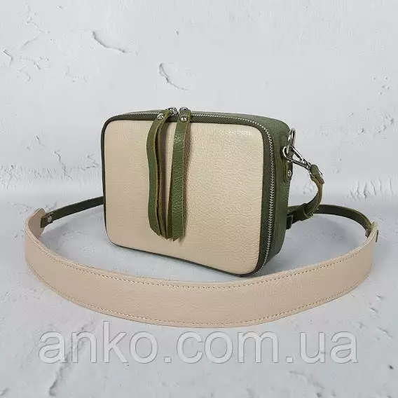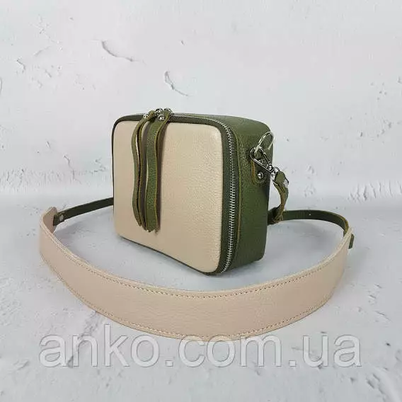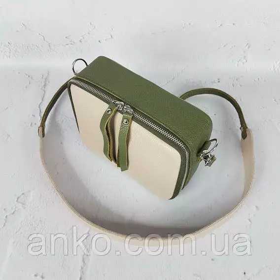 Сумка женская "КВАДРО" натуральная кожа, слоновая кость/хаки флотар