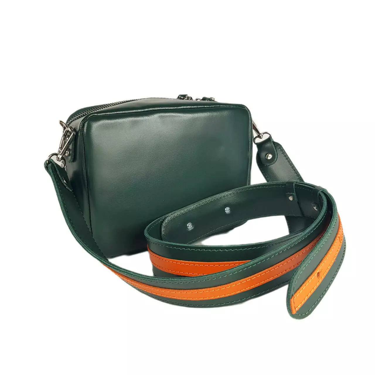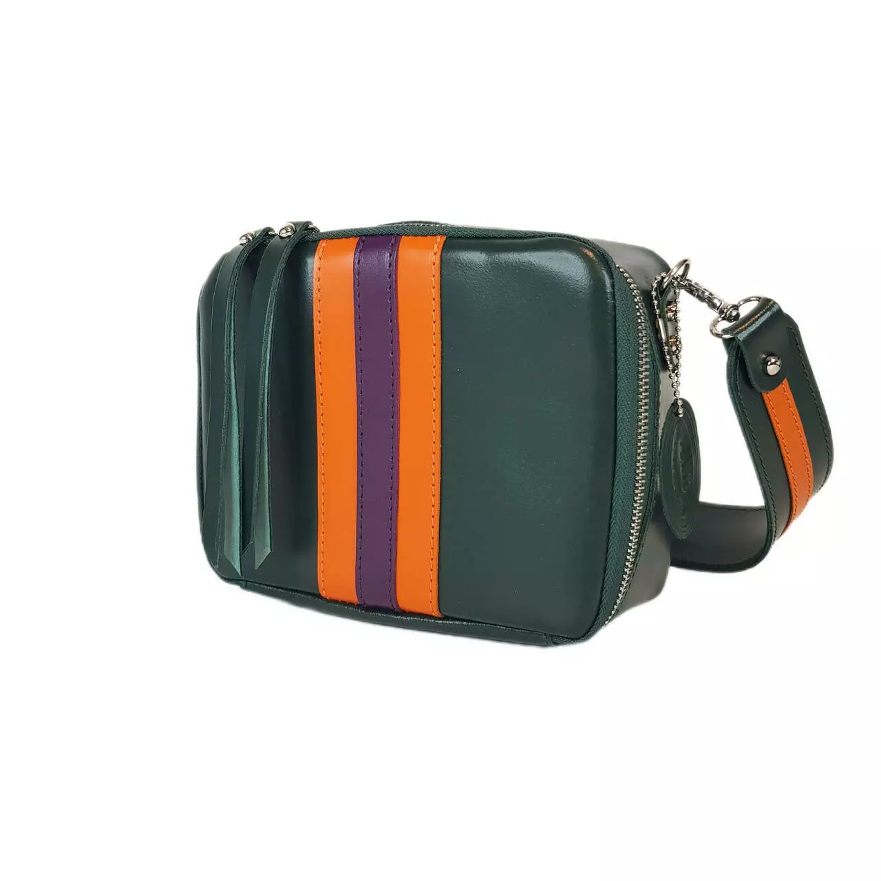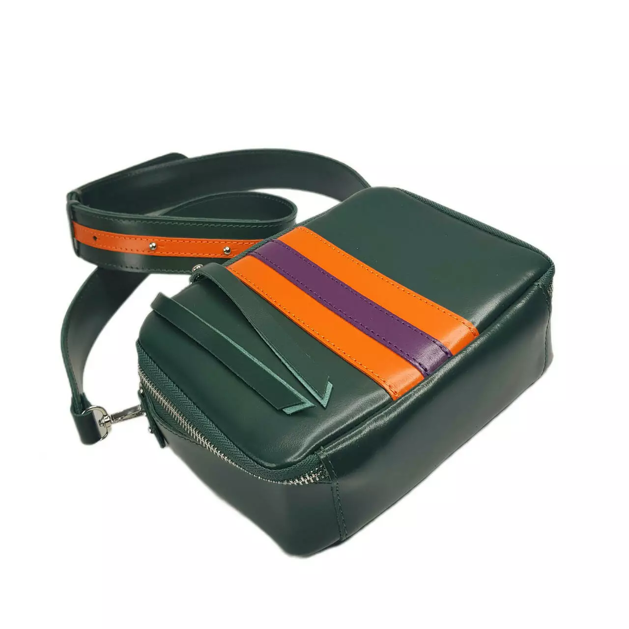 Сумка женская "КВАДРО" натуральная кожа, зеленая/оранжевая/фиолетовая