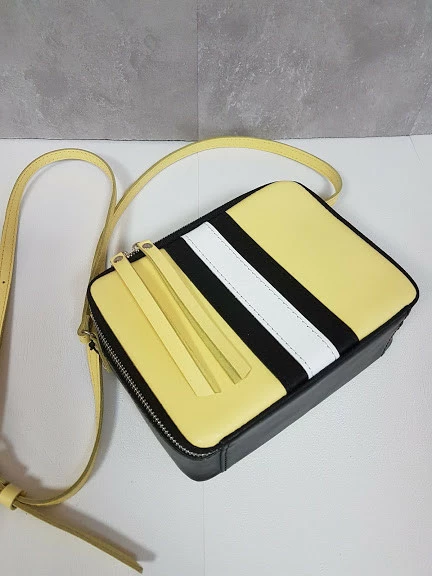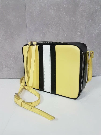 Сумка женская "КВАДРО" натуральная кожа, желтая матовая комбинированная