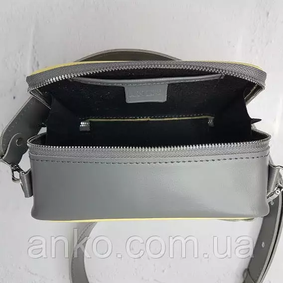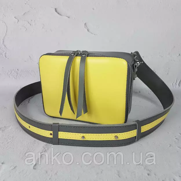 Сумка женская "КВАДРО" натуральная кожа, желтая/серая с широким ремнем