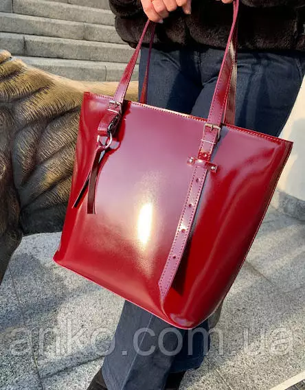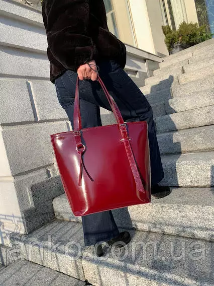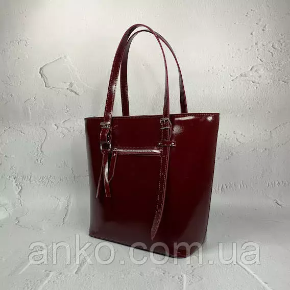 Сумка женская "Лиана" натуральная кожа, бургунди глянец