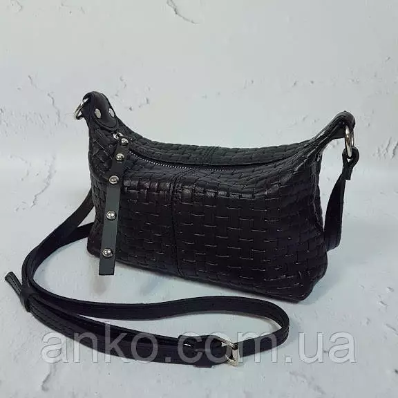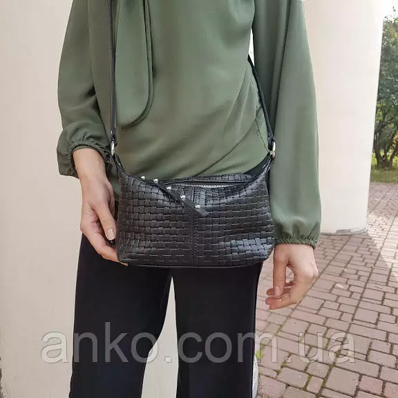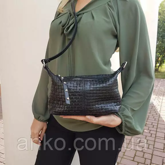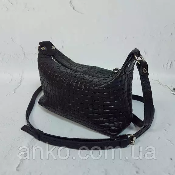 Сумка женская "Лилу" натуральная кожа, черная с тиснением венето