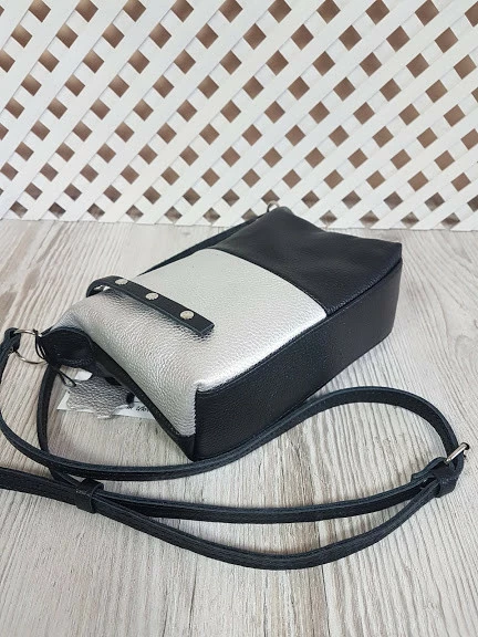 Сумка женская "Лилу" натуральная кожа, комбинированая черный и серебряный флотар