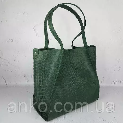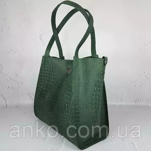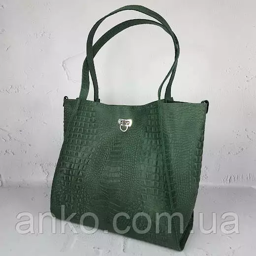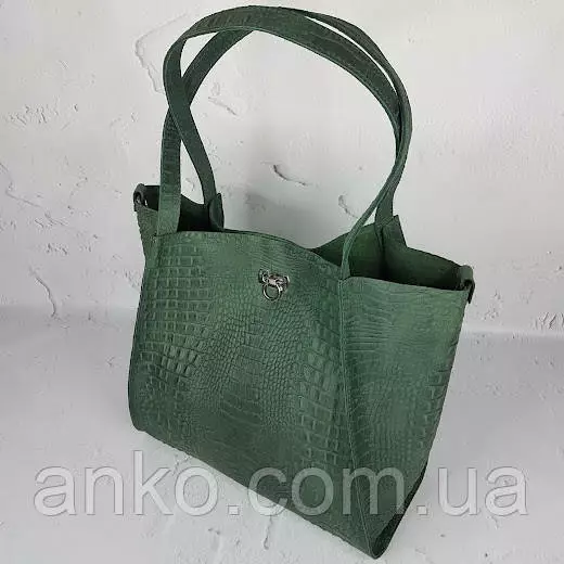 Сумка женская "Лола" натуральная кожа, зеленая Crazy horse под крокодила