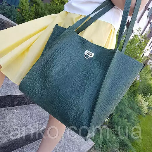Вместительная сумка-шопер изготовлена из натуральной кожи. Внутри основного отделения есть тканевый кофр на молнии, который крепится к сумке на кнопку с помощью кожаного ремешка.