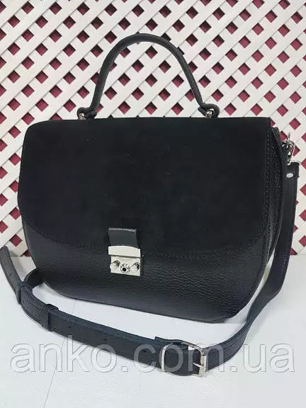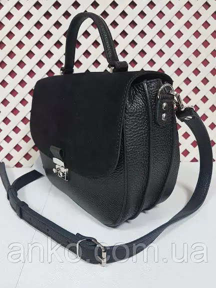 Сумка женская "Луна" натуральная кожа черная, клапан из замши