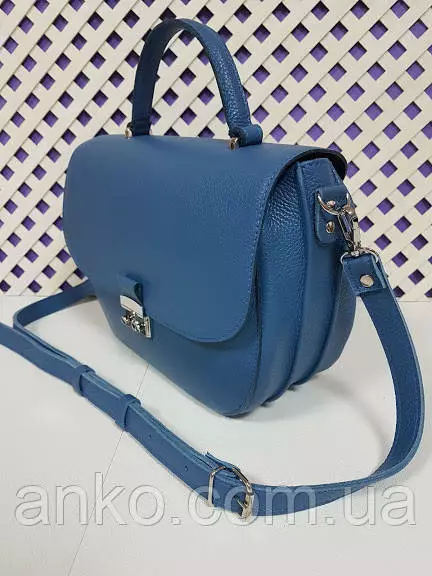 Сумка женская "Луна" натуральная кожа, голубой флотар