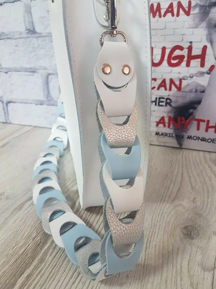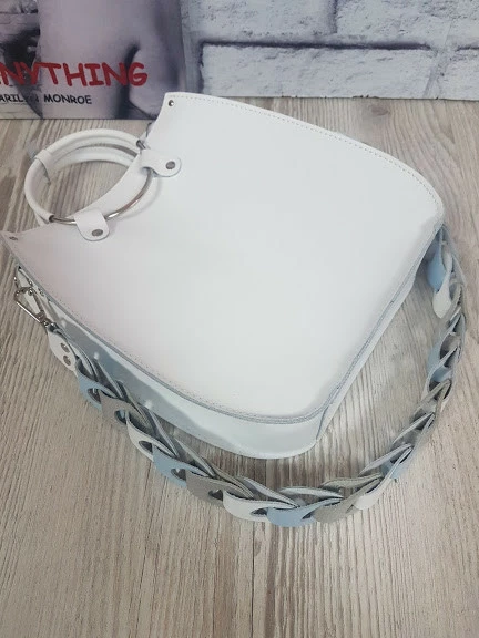 сумочки в необычной форме и ещё более необычном длинном ремне,