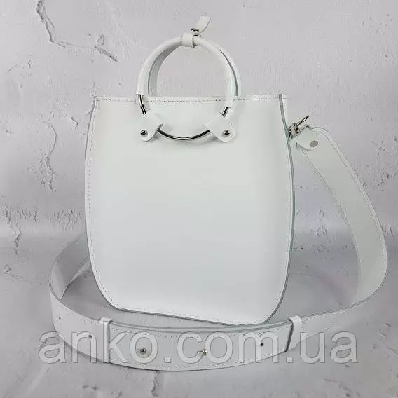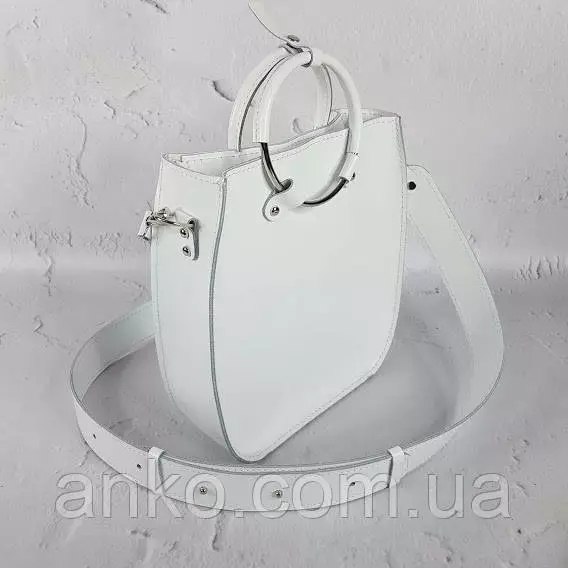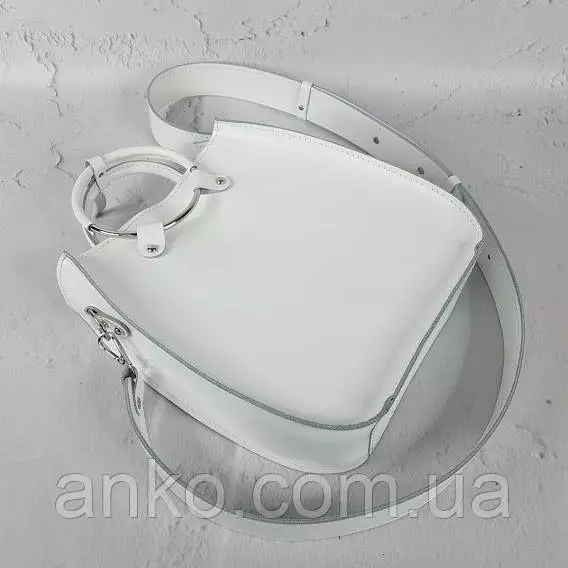 Сумка женская "Мальва" натуральная кожа, белая матовая на широком ремне