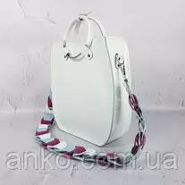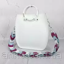 Сумка женская "Мальва" натуральная кожа, белая матовая с плетеным ремнем