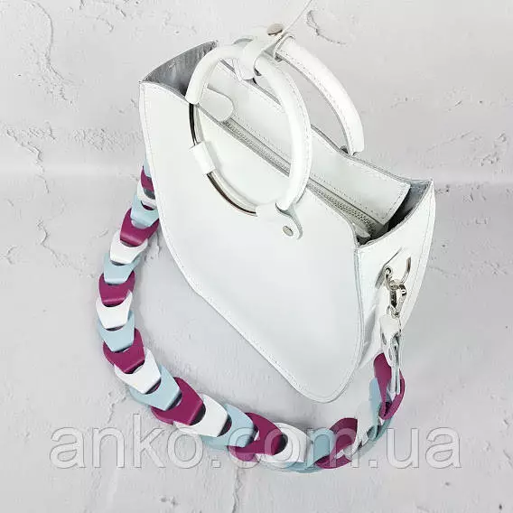 сумочки в необычной форме и ещё более необычном длинном ремне,