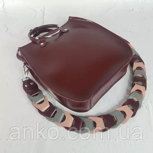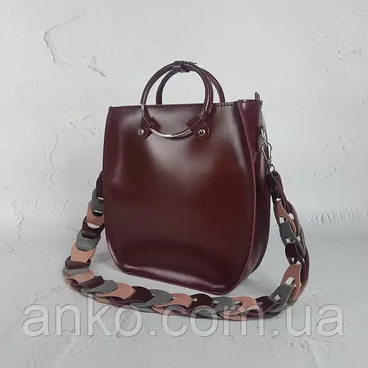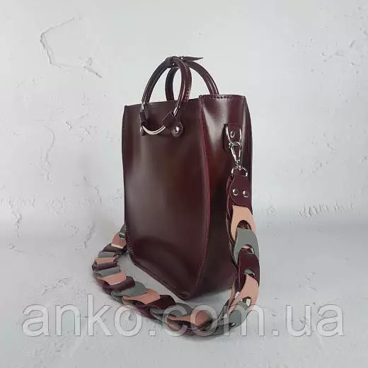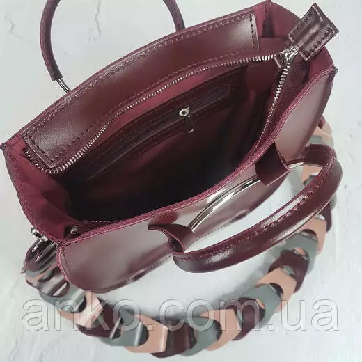 Сумка женская "Мальва" натуральная кожа, бургунди матовая с цветным ремнем