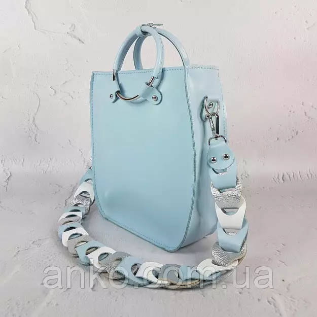 сумочки в необычной форме и ещё более необычном длинном ремне,