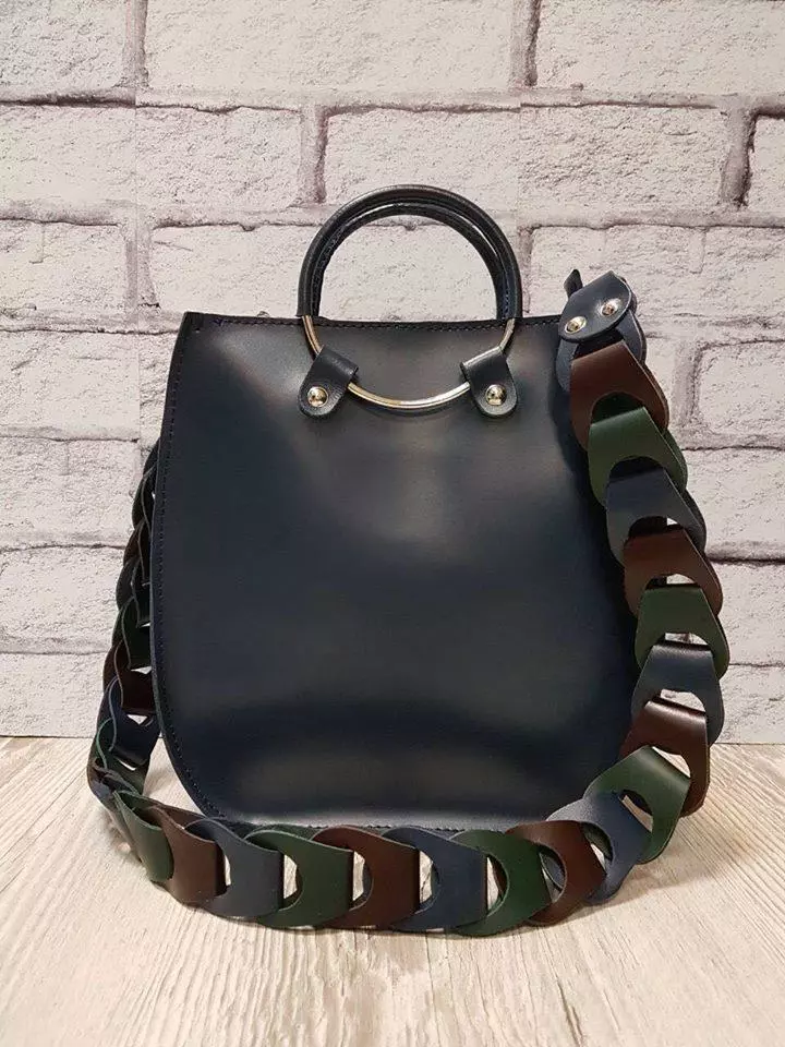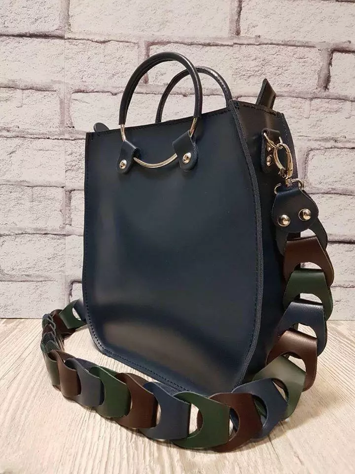 сумочки в необычной форме и ещё более необычном длинном ремне,