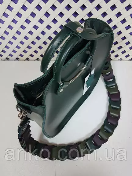 Сумка женская "Мальва" натуральная кожа, зеленая с плетеным ремнем