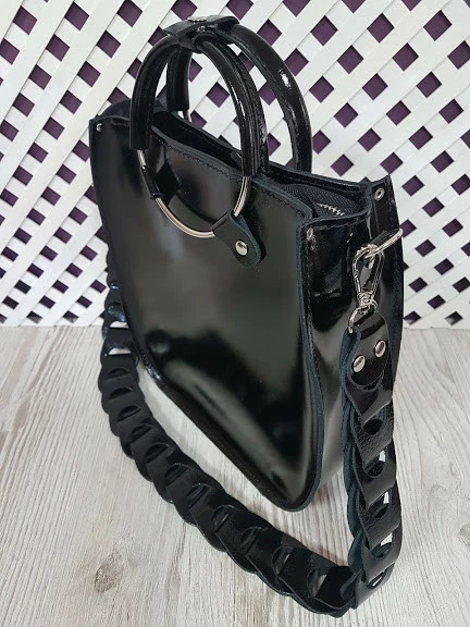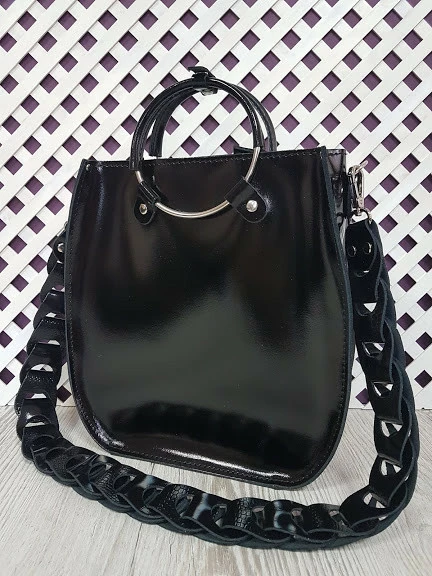 Сумка женская "Мальва" натуральная кожа, черный глянец