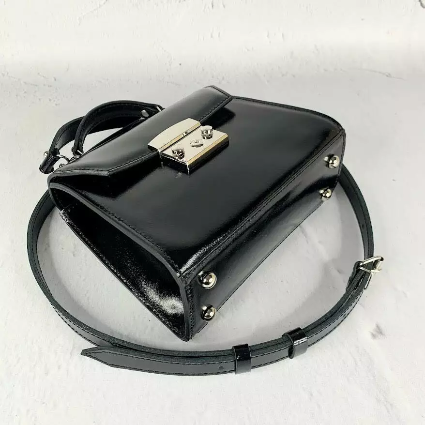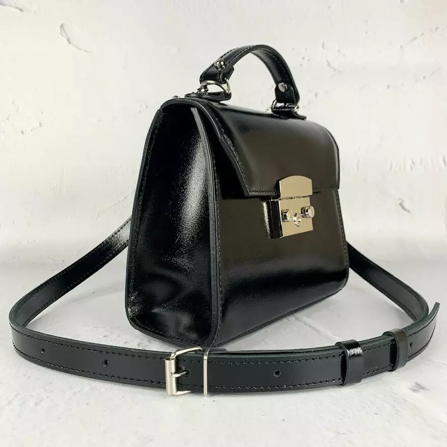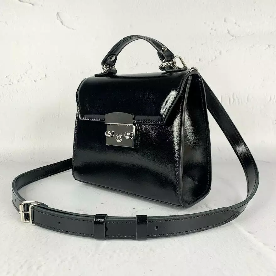Сумка женская "Мерри" натуральная кожа, черная глянец