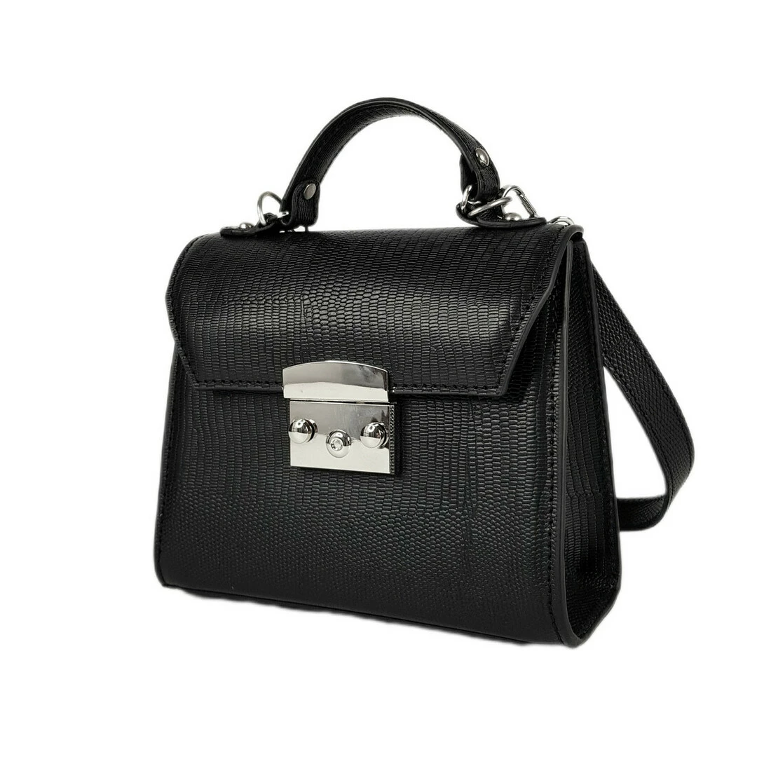 Сумка женская "Мерри" натуральная кожа, черная рептилия