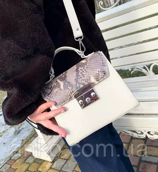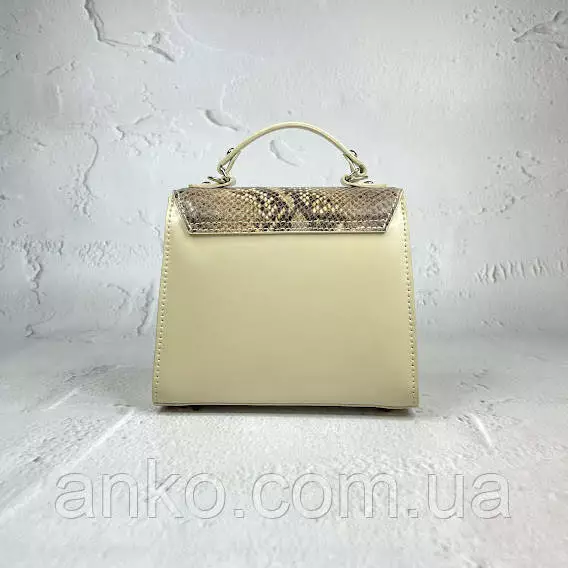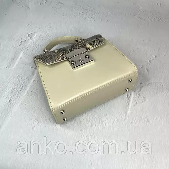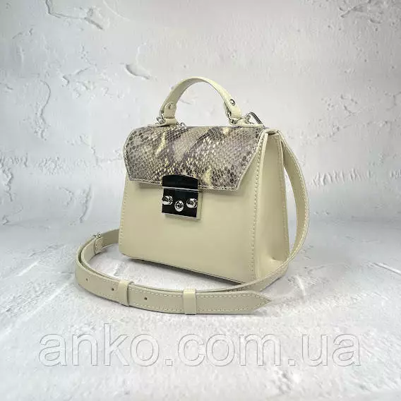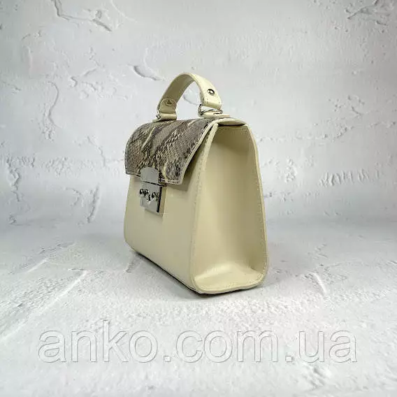 Сумка женская "Мерри" натуральная кожа, слоновая кость с имитацией под питона