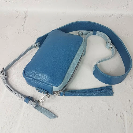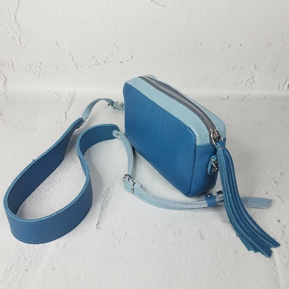 Сумка женская "МИА" натуральная кожа, голубая / синяя