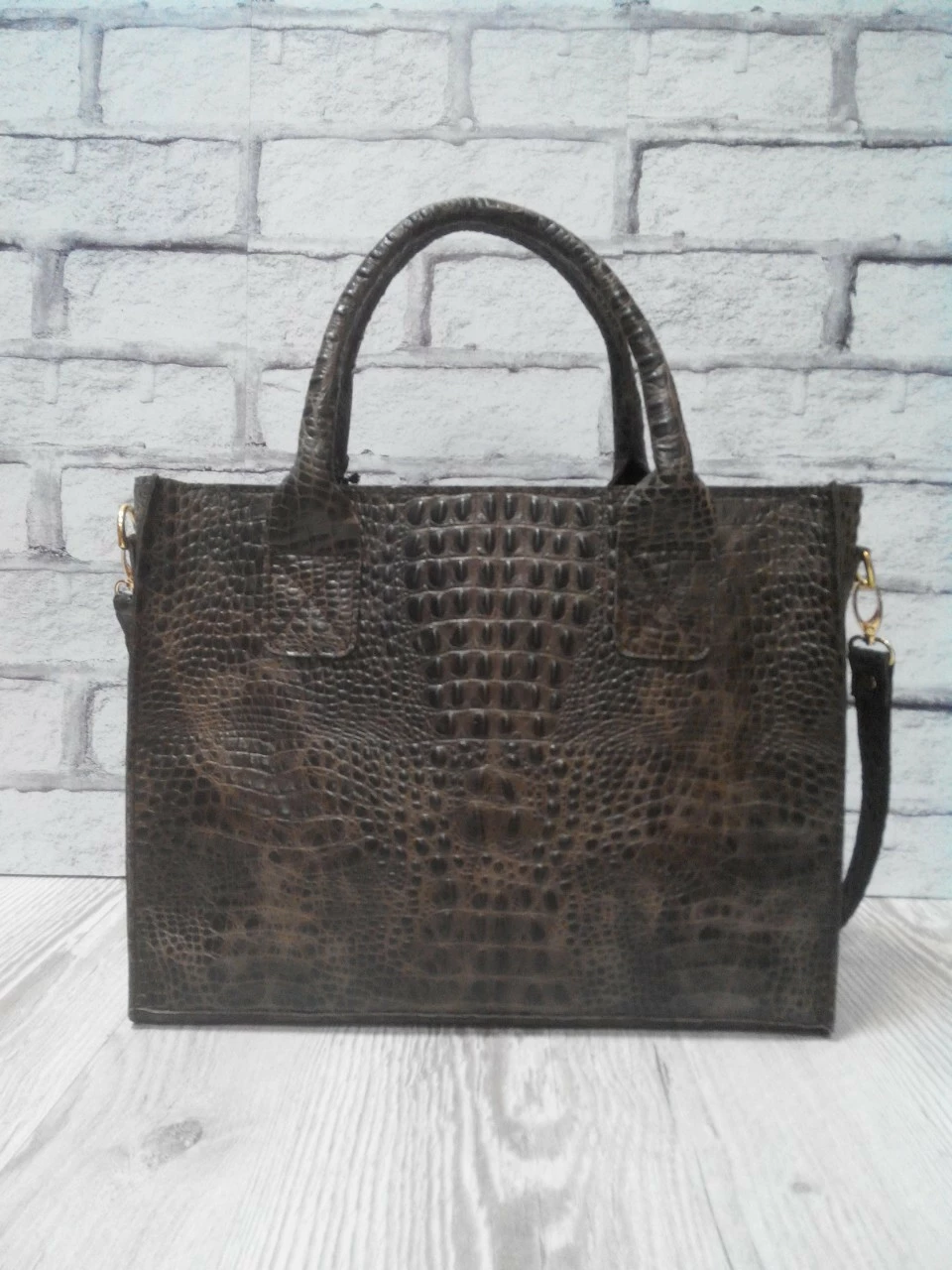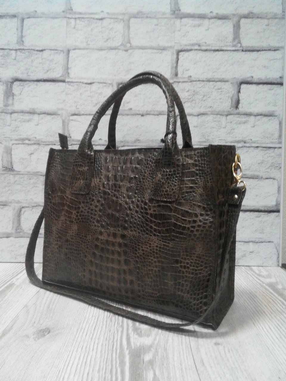 Сумка женская "НОВА" натуральная кожа, коричневая с тиснением под крокодила