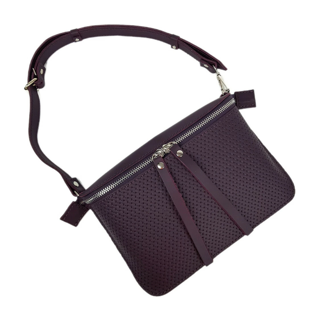 Сумка женская поясная "НЕКСТ" натуральная кожа, баклажан плетенка