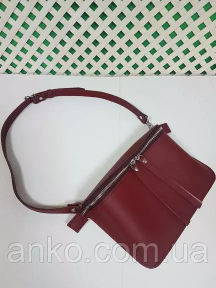 Сумка женская поясная "НЕКСТ" натуральная кожа, бургунди матовая