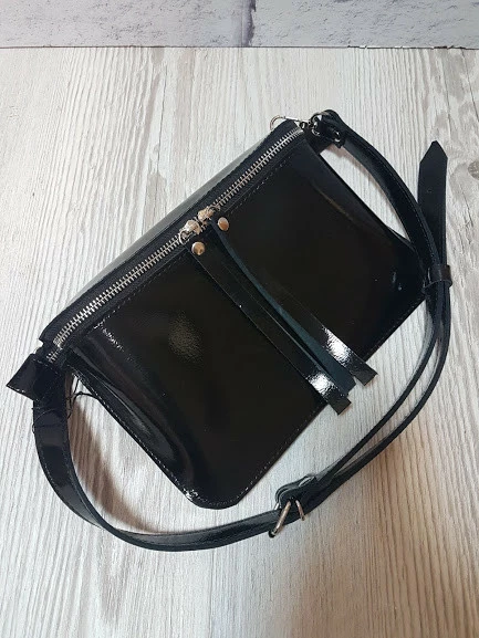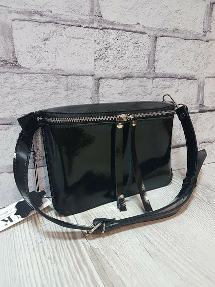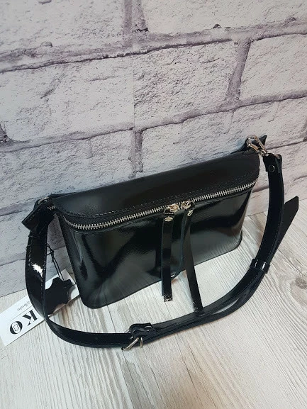 Сумка женская поясная "НЕКСТ" натуральная кожа, черный глянец