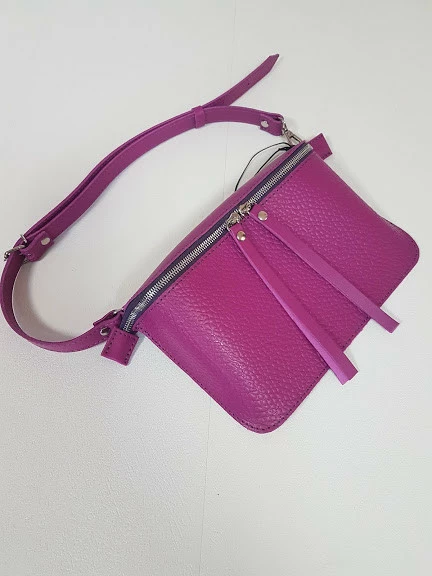 Сумка женская поясная "НЕКСТ" натуральная кожа, фуксия "Жемчуг"