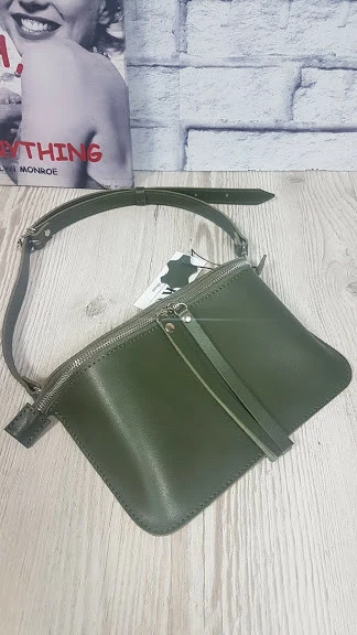 Сумка женская поясная "НЕКСТ" натуральная кожа, хаки матовая