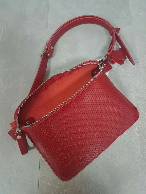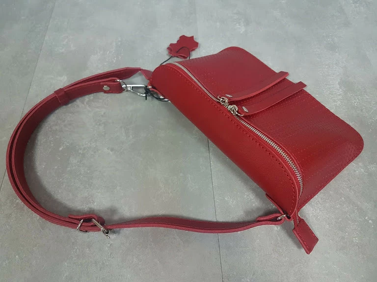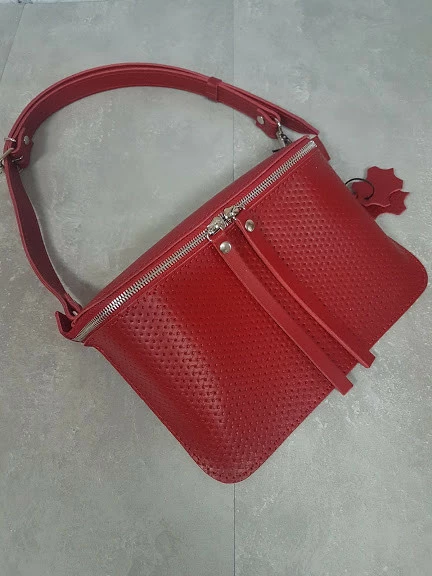 Сумка женская поясная "НЕКСТ" натуральная кожа, красная плетенка