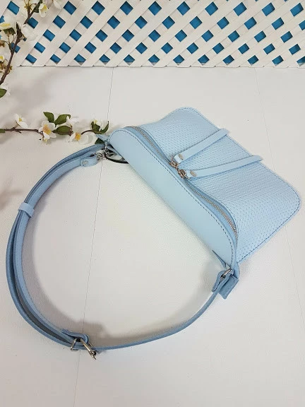 Сумка женская поясная "НЕКСТ" натуральная кожа, небесно-голубая плетенка