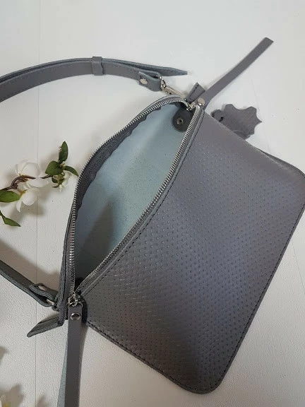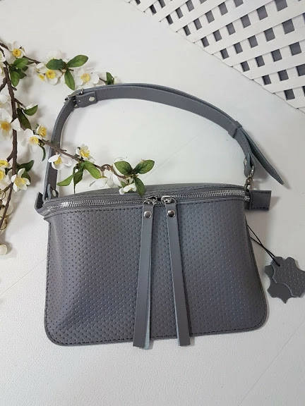 Сумка женская поясная "НЕКСТ" натуральная кожа, серая матовая плетенка