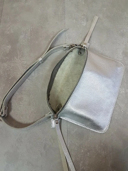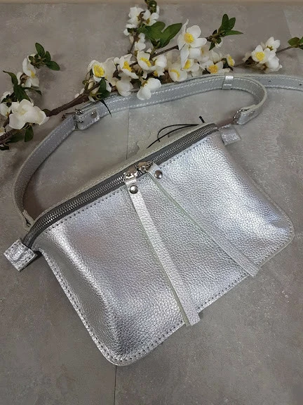 Сумка женская поясная "НЕКСТ" натуральная кожа, серебряный флотар