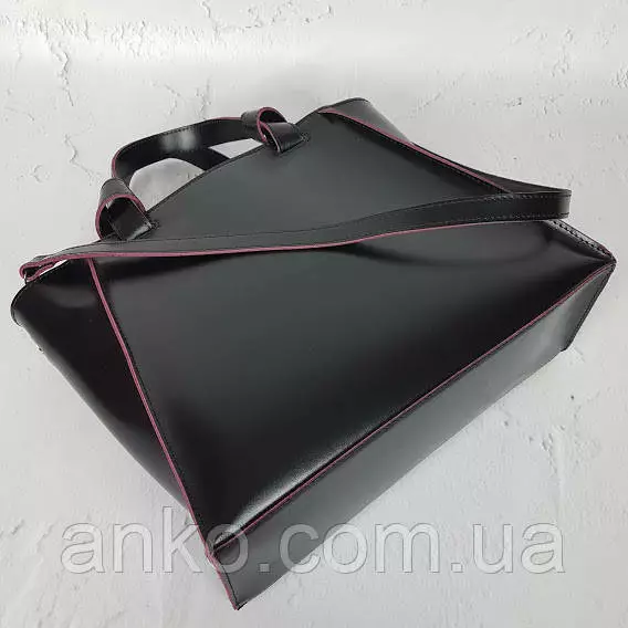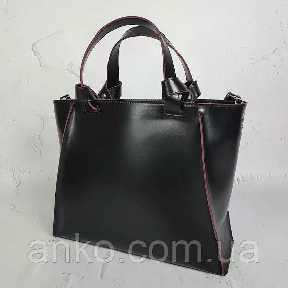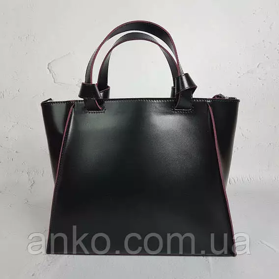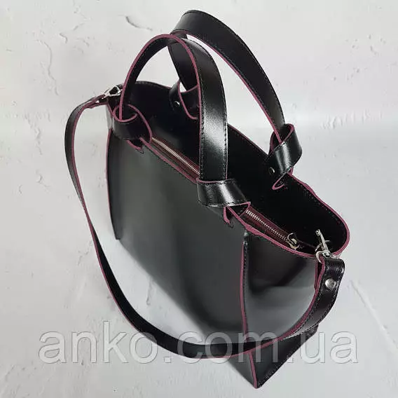 Сумка женская "ПРАГМА" из натуральной кожи, черная полуматовая с бургунди изнанкой