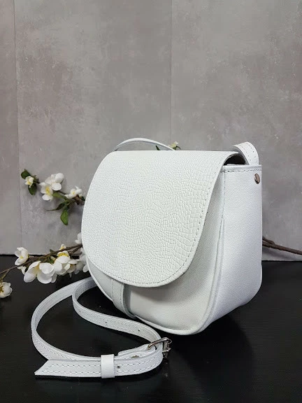Сумка женская "Римини" натуральная кожа, белая матовая под рептилию