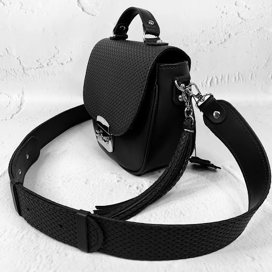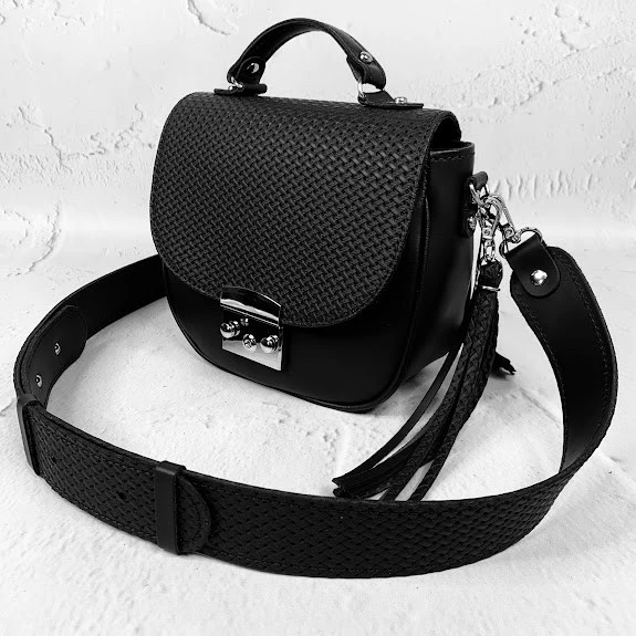 Сумка женская "Римини" натуральная кожа, черная матовая с тиснением плетенка