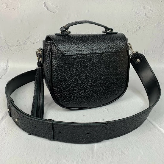 Сумка женская "Римини" натуральная кожа, черная матовая с тиснением жемчуг