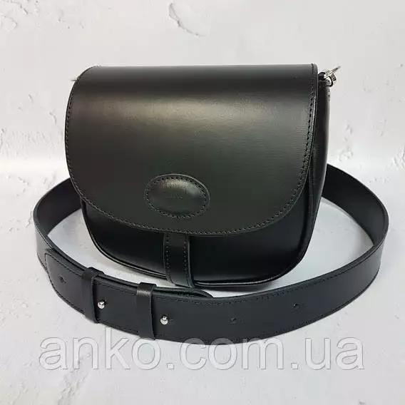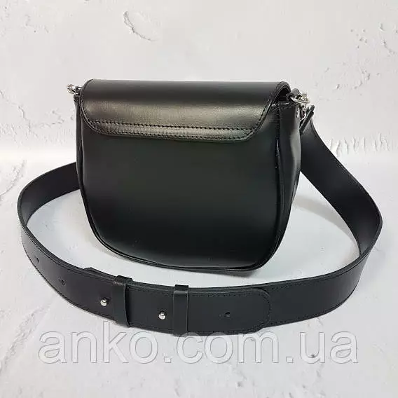 Сумка женская "Римини" натуральная кожа, черная с широким ремнем