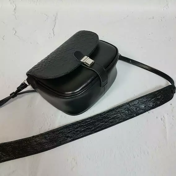 Сумка женская "Римини" натуральная кожа страуса, черная