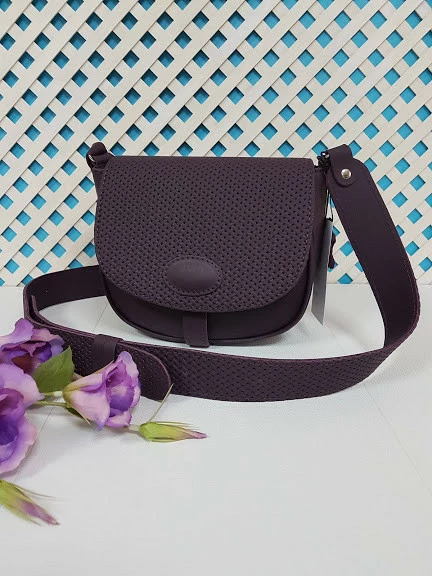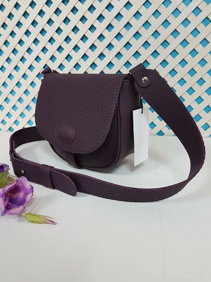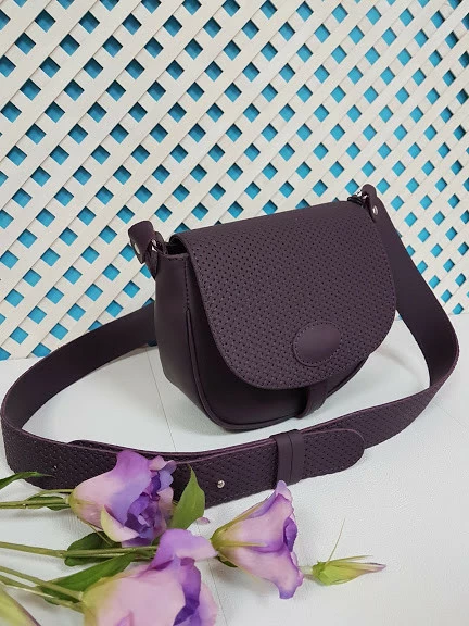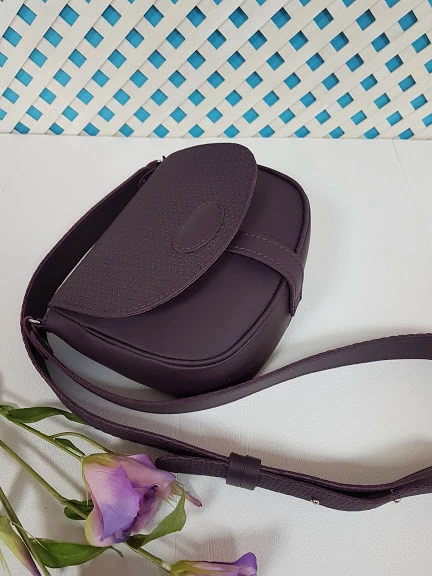 Сумка женская "Римини" натуральная кожа, цвет суперматовый баклажан с широким ремнем