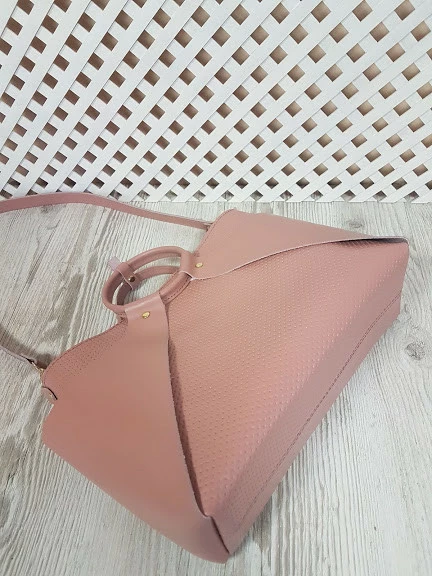 Сумка женская "РОНДА" натуральная кожа,розовая матовая с плетенкой