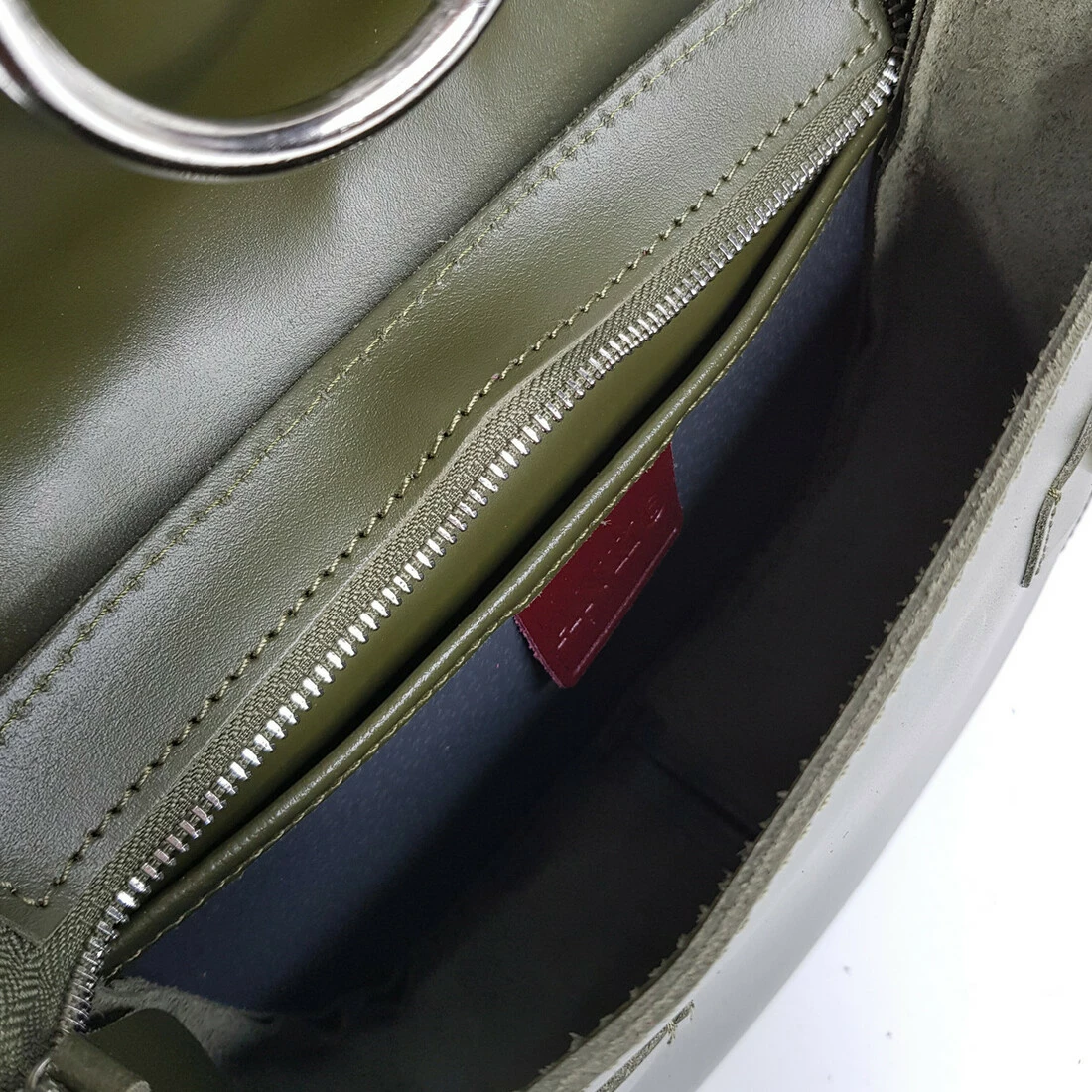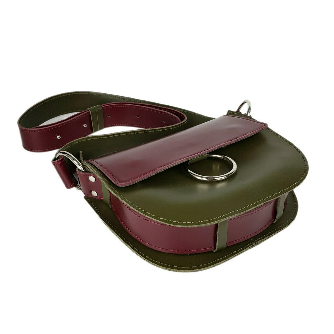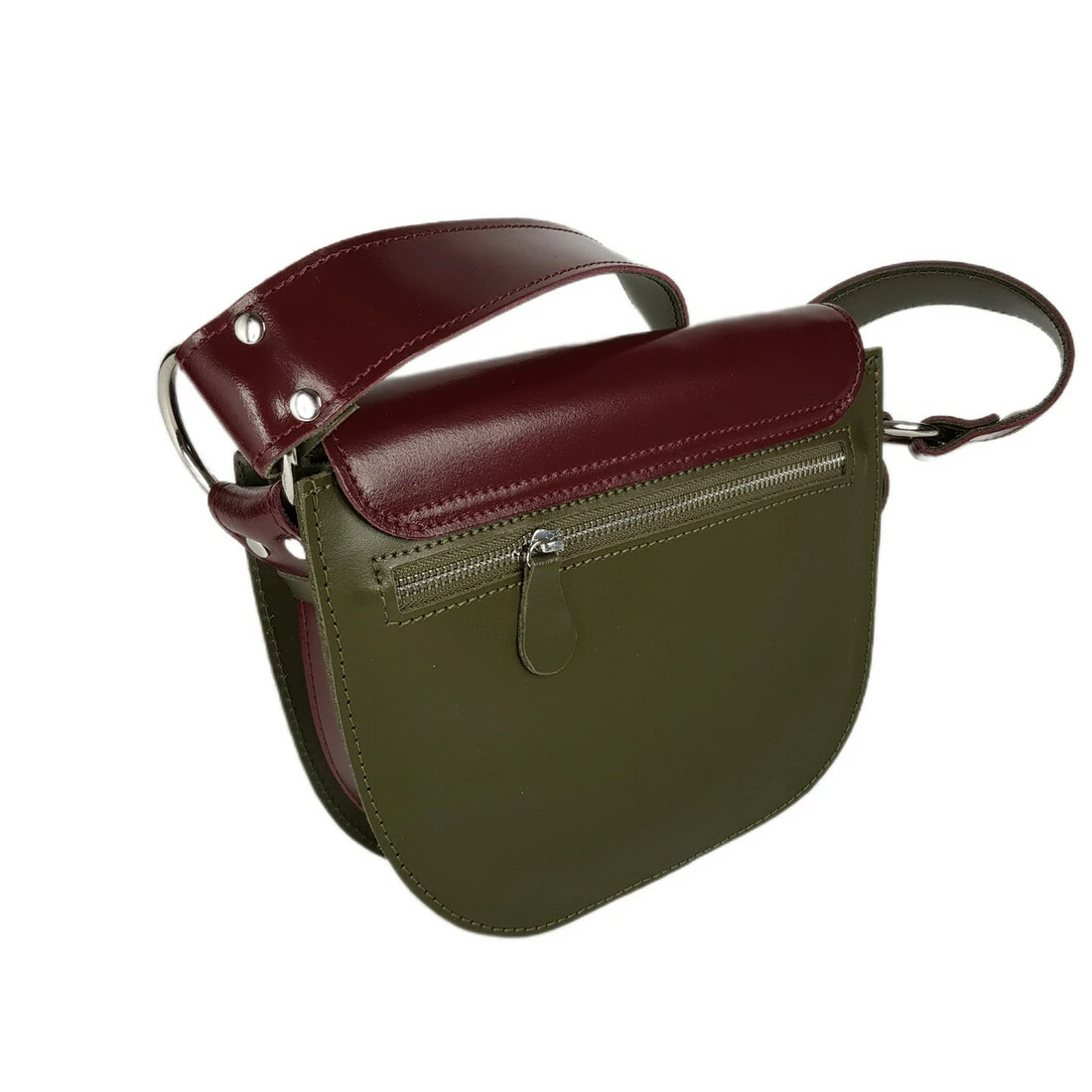 Сумка женская "Рута" натуральная кожа, хаки/бургунди